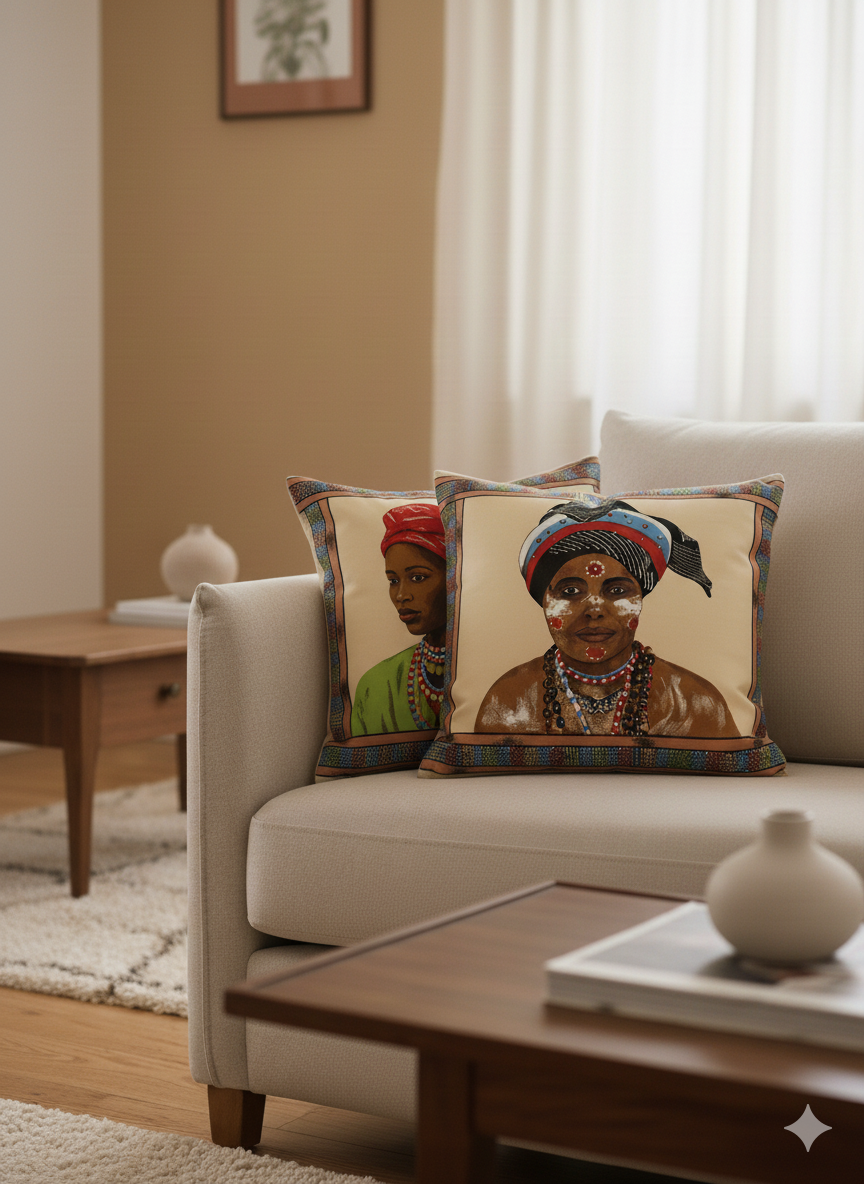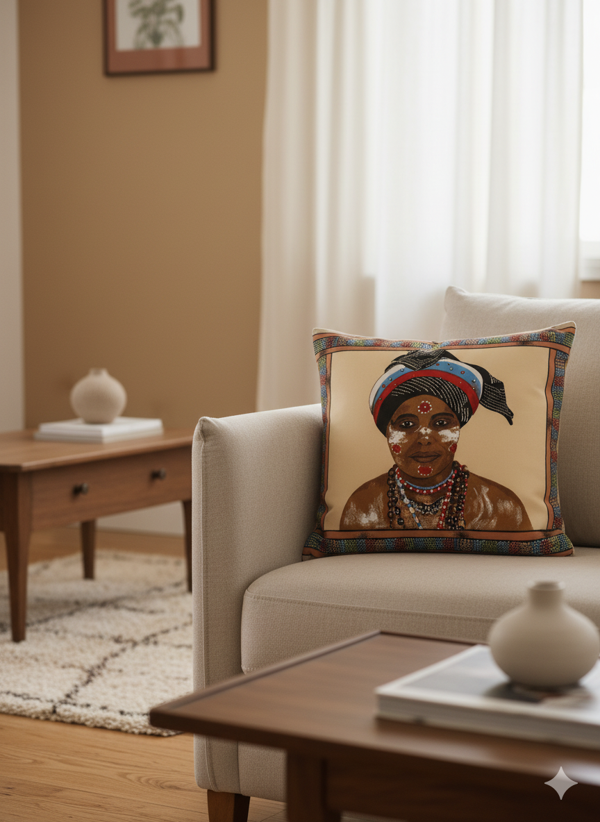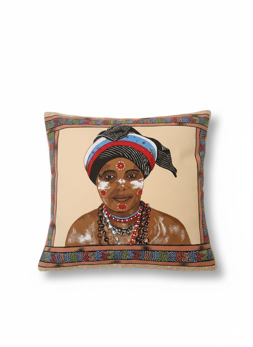 Dieses Kissen bringt Kultur, Farbe und Persönlichkeit in dein Zuhause. Gefertigt aus original südafrikanischem Baumwollstoff zeigt es eine kunstvoll gestaltete Frauenfigur, geschmückt mit traditionellen Mustern, Perlen und Gesichtsverzierungen. Jedes Detail erzählt von afrikanischer Lebensfreude und Handwerkskunst. Die Bezüge sind pflegeleicht, hautfreundlich und sehr strapazierfähig.