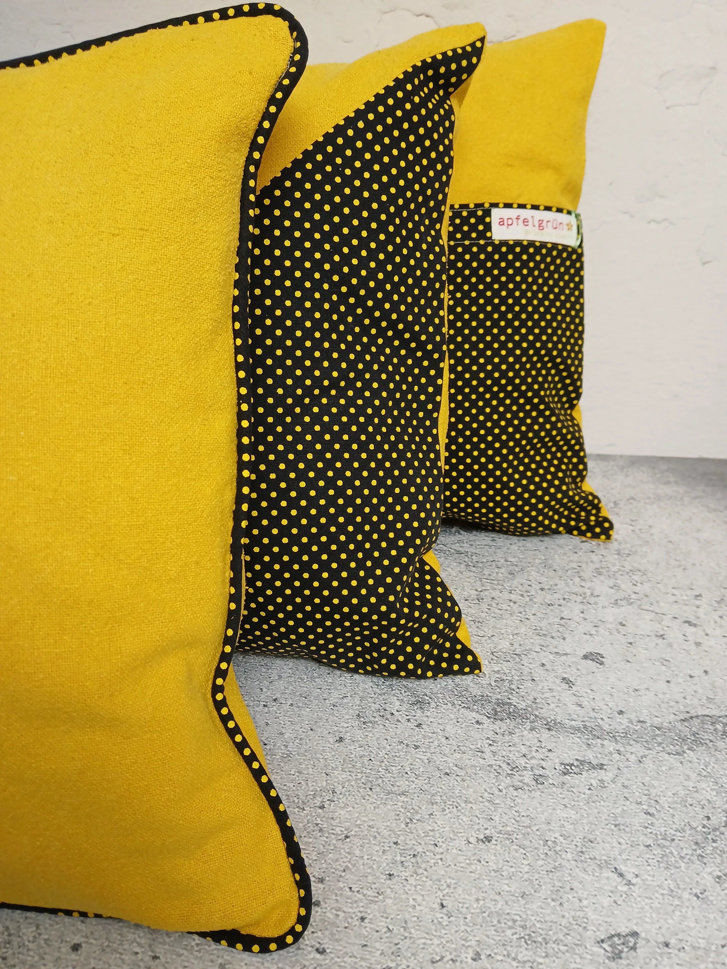 Material & Pflege: Gelbes Kissen: upgecycelte 100% Baumwolle & daGama Textiles & Maschinenwäsche bei 30°C, nicht im Trockner trocknen